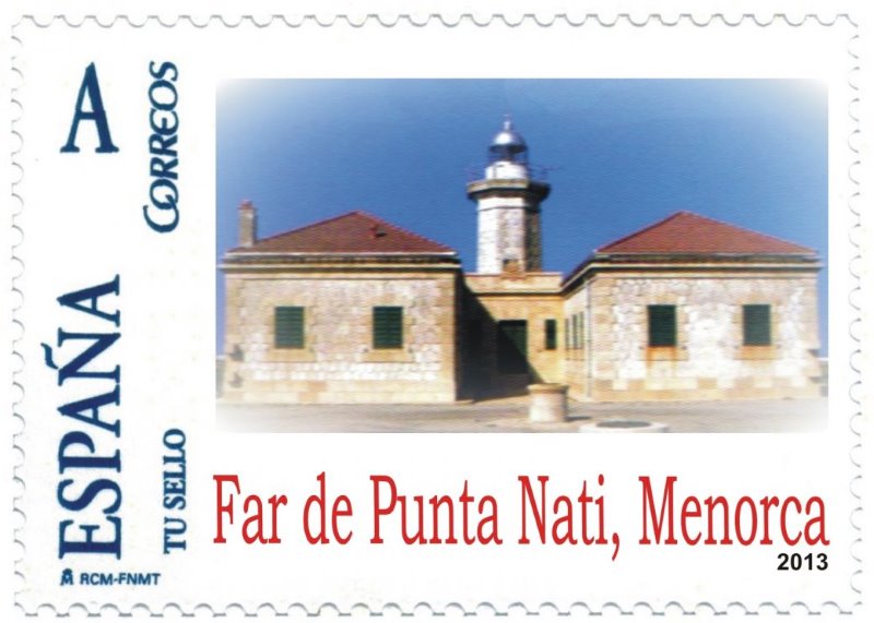 -16 de febrero de 2013 la Sociedad Estatal Correos y Telégrafos de España emite un sello con el “far de Punta Nati”. El valor facial del sello equivale a la tarifa A [envío de cartas normalizadas hasta veinte gramos para el ámbito nacional]. El faro se halla en Punta Nati, isla de Menorca, Islas Baleares (España).