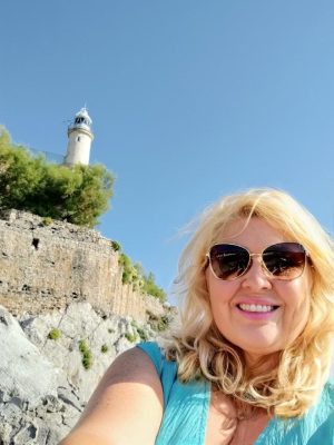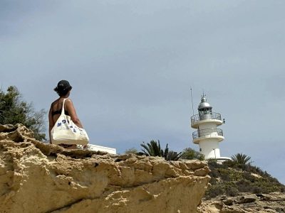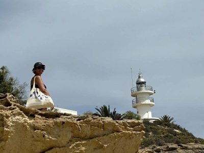 Comentaros que la fotografía que encabeza esta entrada es la que nos ha mandado Fuensanta Martínez en la que aparece junto a una amiga observando el imponente “faro de Cabo de Palos”, situado en Cabo de Palos [Cartagena].