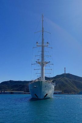 Si ayer publicábamos la despedida del crucero -MV Belle des Océans- del puerto de Cartagena, hoy nos levantamos con la llegada de un nuevo crucero, mucho más pequeño, pero no por ello menos importante. Se trata del -Wind Star-.