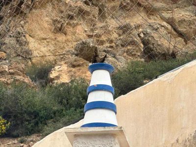 El actual ganador del concurso «El faro rojo… eres tú», Juan Luis, se ha vuelto a encontrar un faro en otra de las playas de nuestro litoral. Parece que tiene un imán porque últimamente no cesa de descubrir faros. Realmente no es un faro al uso, sino uno decorativo. Está situado en una vivienda de la calle carretera del Portús, en la localidad El Portús (Cartagena).