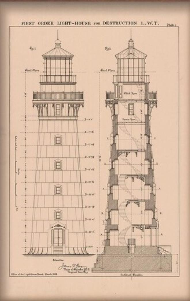 La imagen de cabecera corresponde al plano de construcción de “Destruction Island lighthouse”, un faro situado en Washington, Estados Unidos.