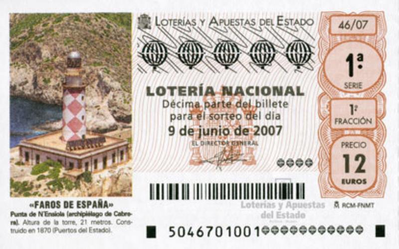 La imagen de cabecera corresponde al décimo de lotería del “faro de Punta Anciola” -faro de Punta de n’Ensiola-, situado en la isla de Cabrera, España.