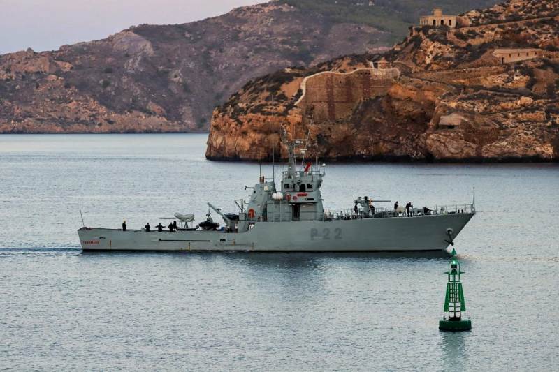 El patrullero P-22 -Tagomago- arribando al Puerto, pasando entre el antiguo faro de la Podadera y la baliza del Bajo de Santa Ana.