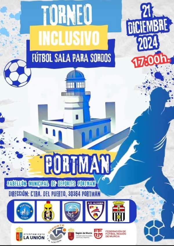 La imagen de cabecera corresponde al cartel anunciador del “Torneo inclusivo de fútbol sala para sordos”. En él aparece el «faro de Portmán», situado en la localidad homónima, La Unión, España.
