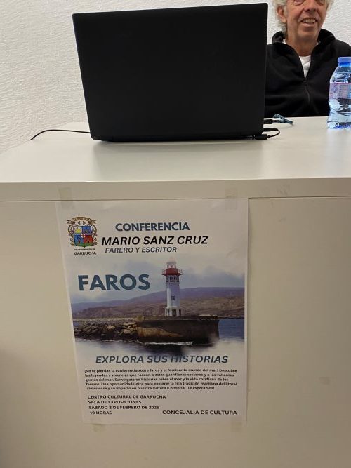 Esta tarde en la sala de Exposiciones del Centro Cultural de la localidad de Garrucha (Almería), Mario Sanz Cruz, nos ha cautivado con una interesantísima conferencia sobre los faros. Durante más de una hora y media hemos escuchado a este agitador cultural hablar sobre un tema que nos apasiona, los faros.