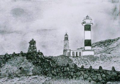 La imagen de cabecera corresponde al boceto del dibujo de los faros de Fuencaliente, en la isla de La Palma (Canarias). Éste y todos los faros dibujados que aparecen son obra de José María.