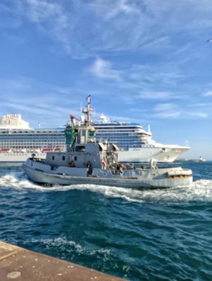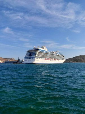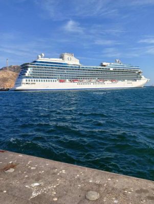 Hoy, 10 de septiembre, ha arribado por primera vez al Puerto de Cartagena el crucero -Allura-. Nuestro amigo Pruden no se encontraba allí a las 9 de la mañana para darle la bienvenida, pero no ha podido resistirse a verlo partir. Así que alrededor de las 18 h se ha dirigido a la terminal de cruceros y, además, de contemplar como zarpaba el crucero lo ha fotografiado. Pruden nos ha enviado numerosas fotografías tanto de la maniobra como del crucero a su paso por los faros de la bahía de Cartagena. Vamos a disfrutarlas. Pero antes, vamos a comentaros algunas cosas sobre este buque.