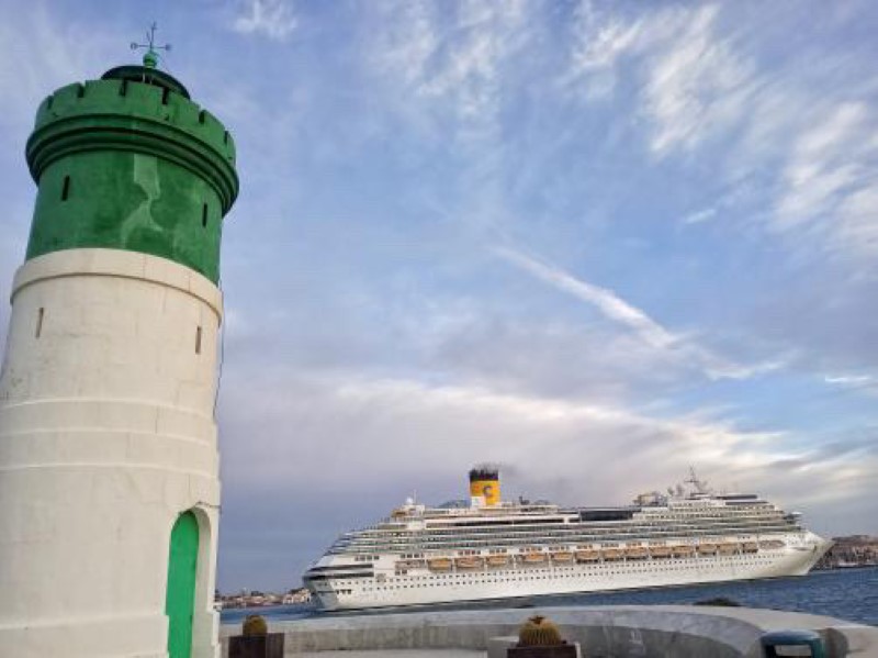 En la imagen de cabecera podemos ver al crucero -Costa Favolosa- a su paso por el faro de la Curra.