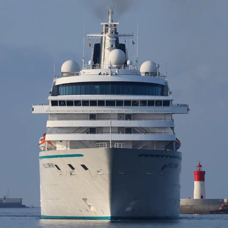 El -Crystal Symphony- está considerado como uno de los dos mejores barcos del mundo. Se construyó en 1995 y el año pasado sufrió una profunda y cara renovación. Navega bajo bandera de Bahamas.