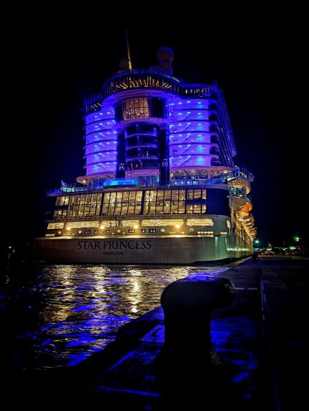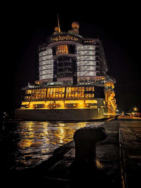 Hoy, domingo 19 de octubre, nos han visitado dos cruceros. El -Azamara Pursuit- y el -Star Princess-. Pues bien, nuestro amigo Pruden ha fotografiado toda la maniobra de atraque del segundo crucero, el -Star Princess-. Sin olvidar, claro está, captar uno de los dos faros de nuestro hermoso puerto encendido. En esta ocasión, el faro escogido ha sido el de la Curra. Y como colofón, para cerrar esta serie de imágenes, os mostramos las dos en las que aparece un noray, una de las señas de identidad de las fotos de Pruden.