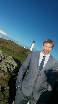 Fotomontaje del actor escocés Gerard Butler en Mull of Galloway Lighthouse (Escocia)