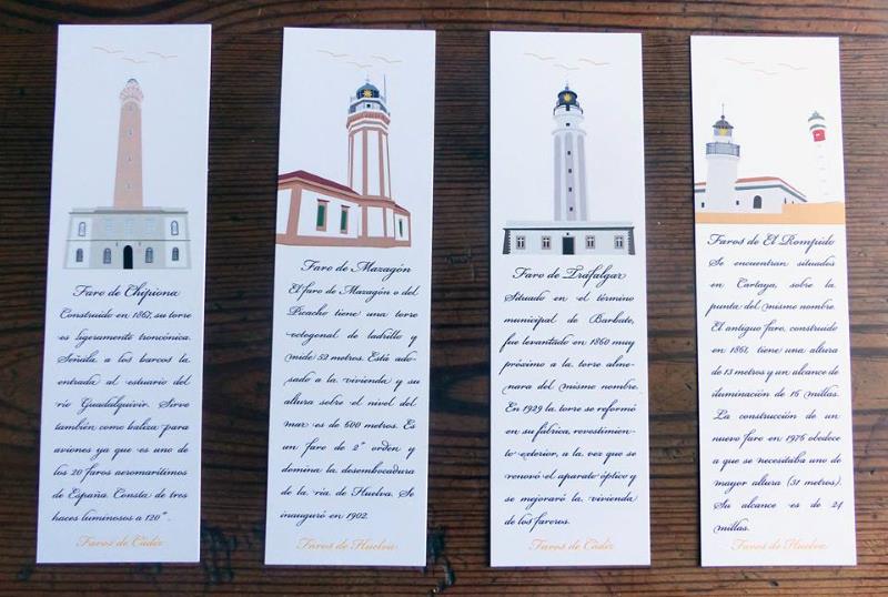 Por fin, todos aquellos que resultaron ganadores en la II edición del concurso «Trivial de los faros» tienen su juego completo de marcapáginas con algunos de los faros más representativos de Andalucía. Como sabéis, estos premios nos los han proporcionado nuestros amigos de Obsequia Regalos Inusuales, colaboradores habituales de este blog.