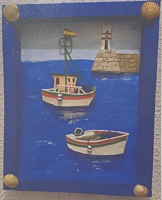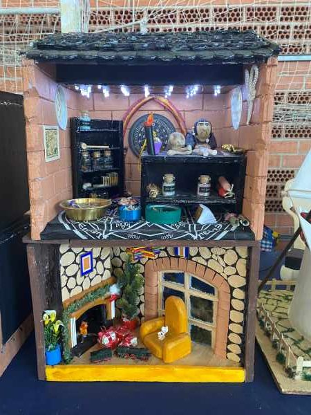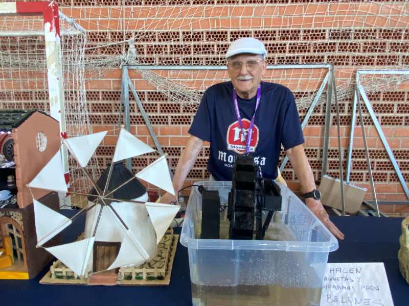Juan nos cuenta que su primer trabajo fue una réplica del navío Santísima Trinidad, en el que invirtió ocho años [pero en aquel momento se hallaba trabajando]. Posteriormente, se centró en los belenes; llegando a construir toda la decoración del Belén del Llano de Brujas {Murcia}. Eso sí, no hace figuras, porque según comenta para eso están los maestros belenistas. Nos ha mostrado un diorama que hizo en el que incluyó un faro. Actualmente está jubilado, por lo que dispone de muchísimo tiempo libre, y por ese motivo, sus creaciones han aumentado de forma exponencial.
