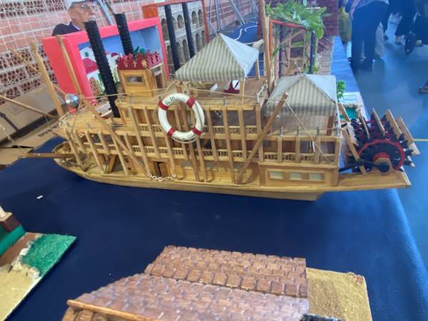 A continuación, os mostramos algunos de los excelentes trabajos que ha hecho Juan y que tiene a la venta. Entre ellos destaca un barco de vapor de ruedas, palmeras realizadas con piñas naturales, un teatro romano, maquetas, distintos dioramas, etc. Por si os interesa, el propio Juan nos ha comentado que acepta encargos. Este es su número de teléfono por si queréis pedirle que os cree algún objeto: 683330649