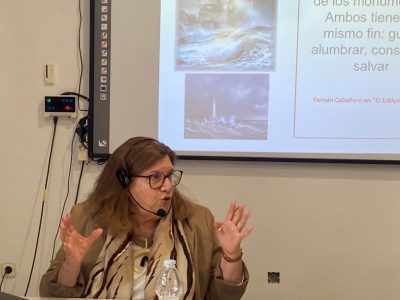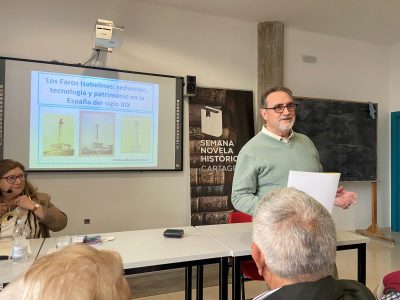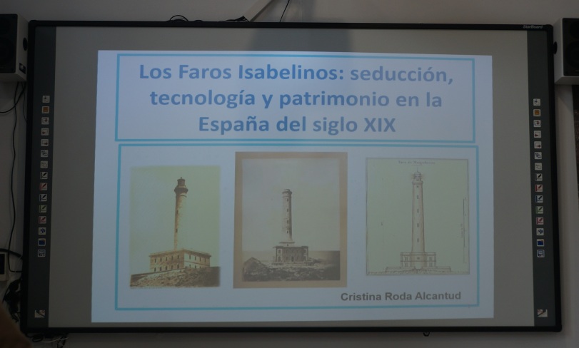 La imagen de cabecera corresponde a la primera diapositiva de la presentación de Cristina Roda Alcantud sobre los faros isabelinos.