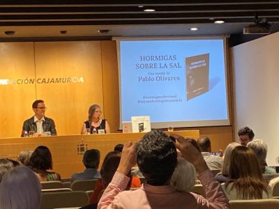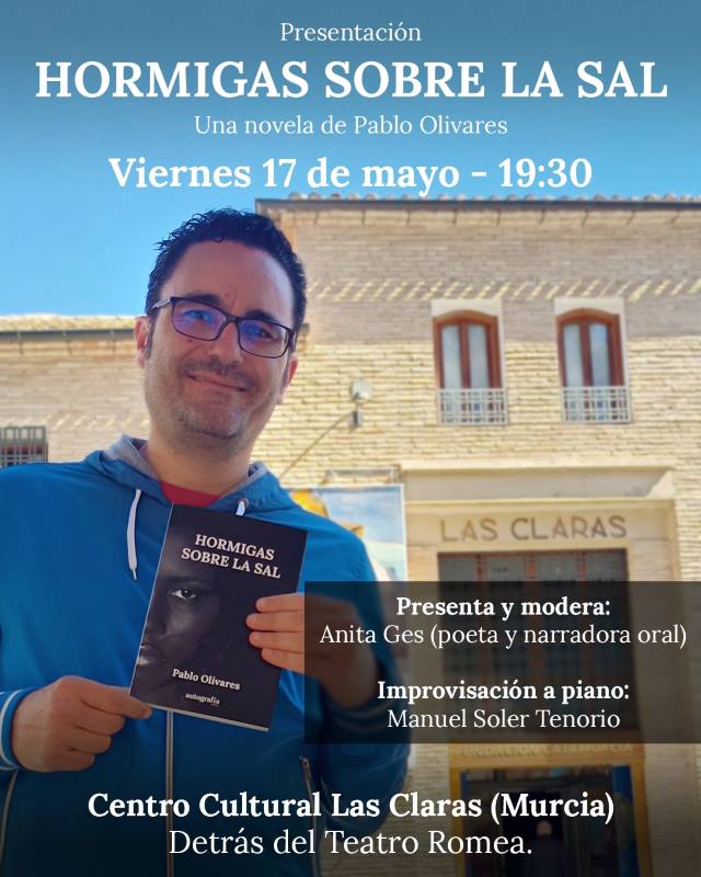 Esta tarde, a las 19:30 h (con puntualidad suiza), Pablo Olivares ha presentado su segunda novela «Hormigas sobre la sal». A diferencia de otras ocasiones no se ha presentado en el faro de Mesa Roldán (Carboneras), sino que hemos asistido al “Centro Cultural Las Claras” en Murcia. Ya sabéis que cuando nos nombran la palabra mágica vamos para informaros lo mejor posible.