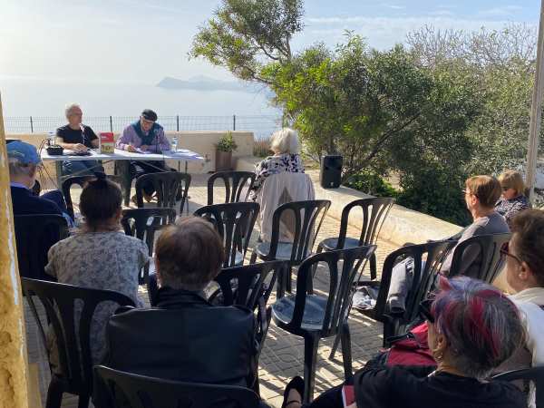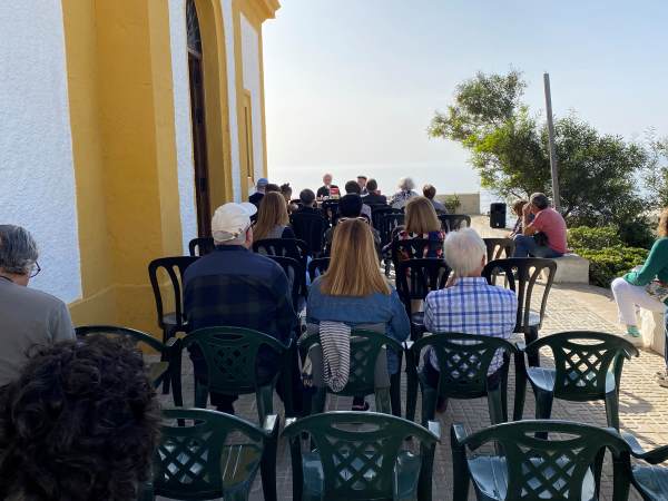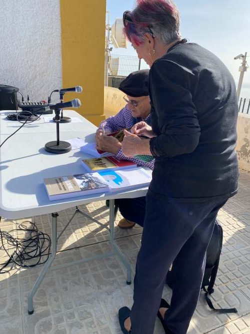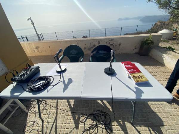 Esta mañana ha vuelto a celebrarse un evento cultural en el faro de Mesa Roldán. La “Asociación de Amigos del faro de Mesa Roldán” ha organizado la presentación del último libro de Pedro Costa Morata, titulado “Israel Del mito al crimen”. Como de costumbre, Mario Sanz Cruz, el último farero de Mesa Roldán, se ha encargado de presentar y acompañar a Pedro durante todo el acto.