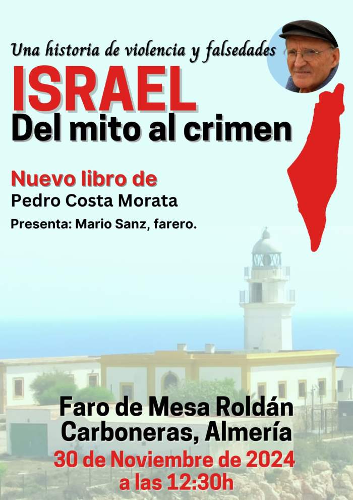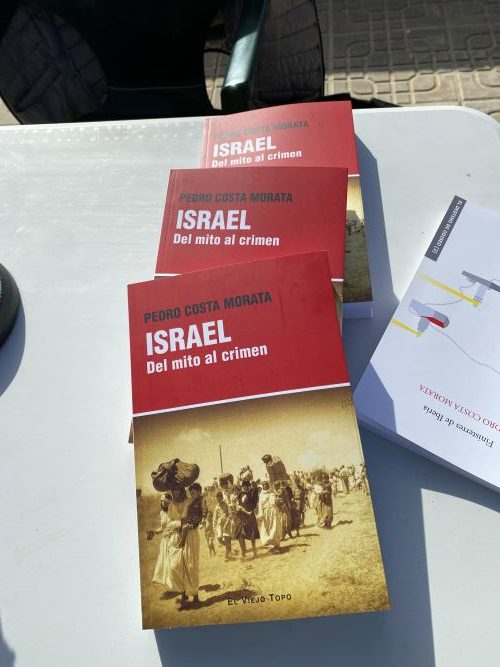 La imagen de cabecera corresponde al cartel anunciador de la presentación del libro «Israel Del mito al crimen» de Pedro Costa Morata.