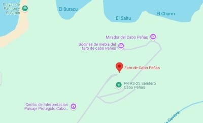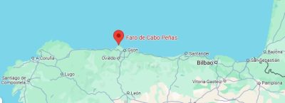 Ubicación del faro en la cornisa cantábricaLocalización exacta del faro de Cabo de Peñas