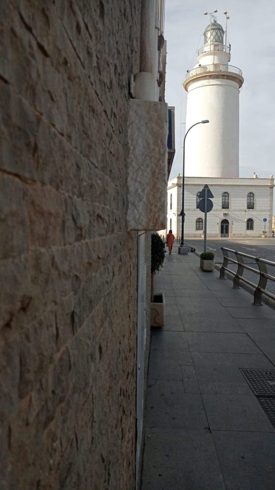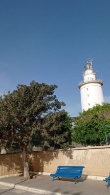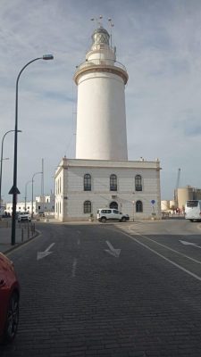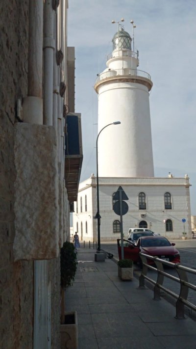 Eva, a pesar de vivir en el interior es una gran seguidora de los faros, sin llegar a ser tan fanática como nosotros. Le gusta mucho la playa y va con mucha más frecuencia que los que vivimos en la costa. Lo que más le atrae a Eva son los museos. Así que cuando iban camino del Centre Pompidou se desvió un poco de su ruta para fotografiar el hermoso faro que hay en el puerto de Málaga, conocido como “La Farola”.