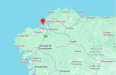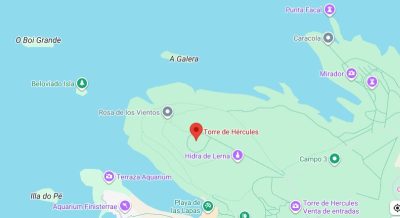 Localización de la Torre de Hércules en la provincia de La Coruña -A Coruña-Ubicación exacta del faro en Punta Eiras