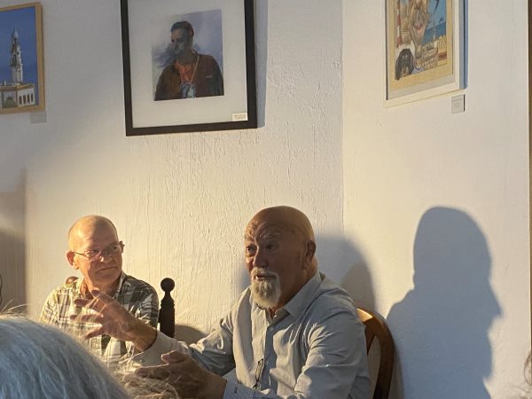 En primer lugar, se inauguró la exposición colectiva de pintura «Miradas» de Lourdes Perlas, Susana Mateo y Charo González. Posteriormente, Mario Sanz Cruz, el último farero de Mesa Roldán, presentó al autor de la novela, Miguel Vega y al editor Miguel Galindo. Este último fue el encargado de hablarnos tanto de la novela como del autor.