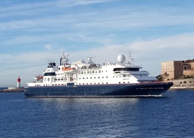 El -MV Belle des Océans- es un crucero de pasajeros, tipo yate. Pertenece a la naviera francesa «CroisiEurope». Navega bajo bandera de Bélgica. Su eslora es de 103 metros. Tiene capacidad para 130 pasajeros mientras que la tripulación la componen 73 personas. Su construcción data de 1990. Fue renovado por completo en 2014. Como curiosidad os diremos que, cuenta con 65 camarotes y que todos tienen vista al exterior. Este crucero tan solo navega principalmente por el mar Mediterráneo y por el océano Atlántico en raras ocasiones.