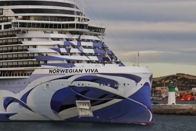 El -Norwegian Viva- navegando hacia los dos faros del puerto de CartagenaLas proas una especialidad de la «casa»La majestuosa silueta de este crucero con esa decoración tan originalLa proa del crucero a la altura del faro de la CurraEl imponente crucero parece una ciudad flotante a su paso por el faro de NavidadRumbo a Motril (Granada). Hasta pronto.