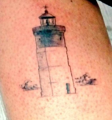 La pasión por los faros no tiene límites. Ya sabéis que hay auténticos coleccionistas de todo tipo de objetos relacionados con los faros, pero también nos hemos encontrado con amigos que lucen sus faros preferidos en su cuerpo. Como Marta y Lorenzo que comparten sus tatuajes de los faros de Cartagena, dos símbolos de nuestra ciudad, ligados al mar y a su esencia. Ella, es regatista en barcos de vela y luce el faro de la Curra porque ha sido un factor decisivo en sus numerosas travesías por nuestra bahía mientras que Lorenzo, hace lo propio con el faro de Navidad por motivos bien diferentes. Él lo considera muy representativo de la mar y, además, de la Armada en homenaje a su padre.