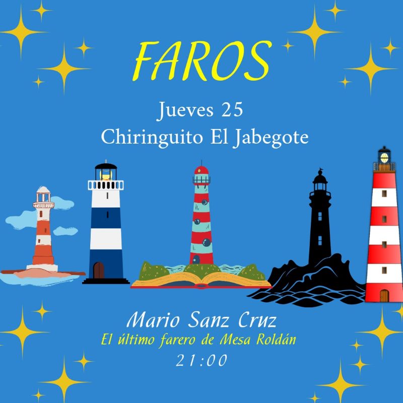 Esta noche a las 21 h Mario Sanz Cruz, el último farero de Mesa Roldán, ha dado una charla titulada «Los faros. Mucho más que señales marítimas» en el chiringuito “El Jabegote”, situado en la avenida Faro Mesa Roldán, playa de Cueva alta, Carboneras.